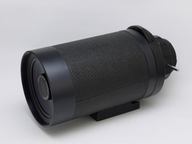ドイツのキノプテックが発売した大口径レフレックスレンズ。マウント交換式で66判以下のフォーマットに対応。鏡筒下部にあるツマミを回転させると主鏡が前後に移動してピントを合わせる。