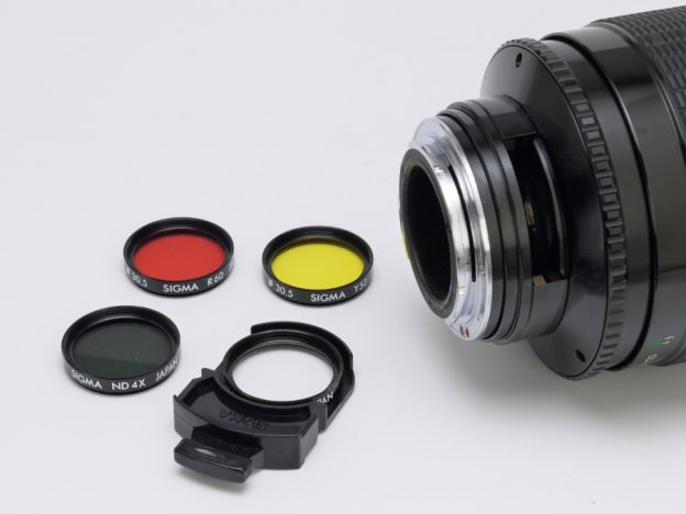 レフレックスレンズの前玉径は大きいので、小口径のフィルターが後部に取り付け可能な製品が多い。写真のようなスロット式のほか直接ねじ込む方式がある。