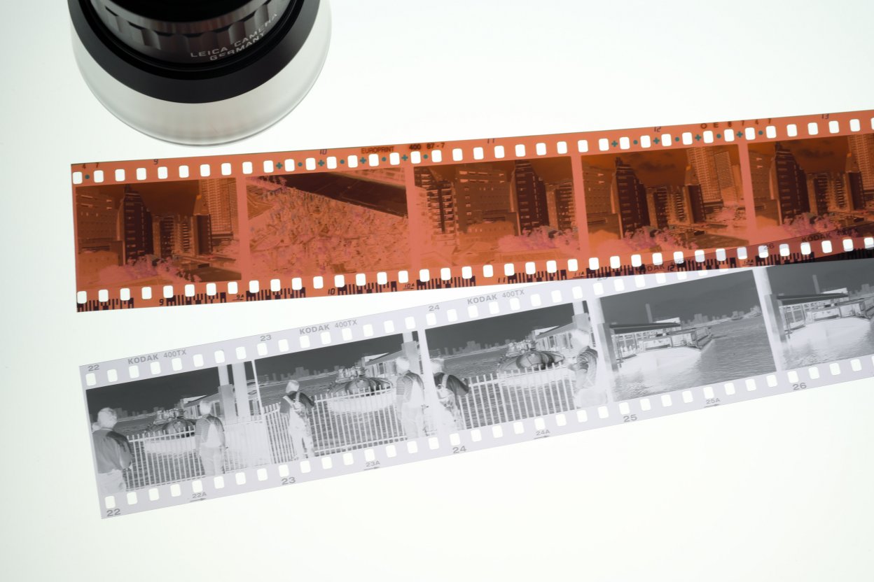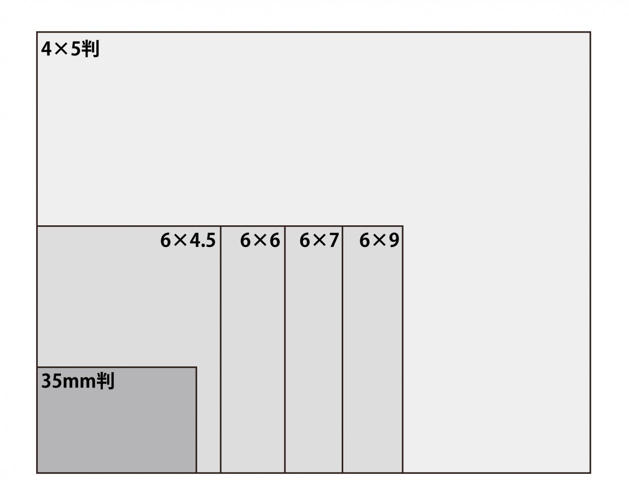 | 4×5インチ(シノゴ)フィルムと、35mmフィルムの比較 |